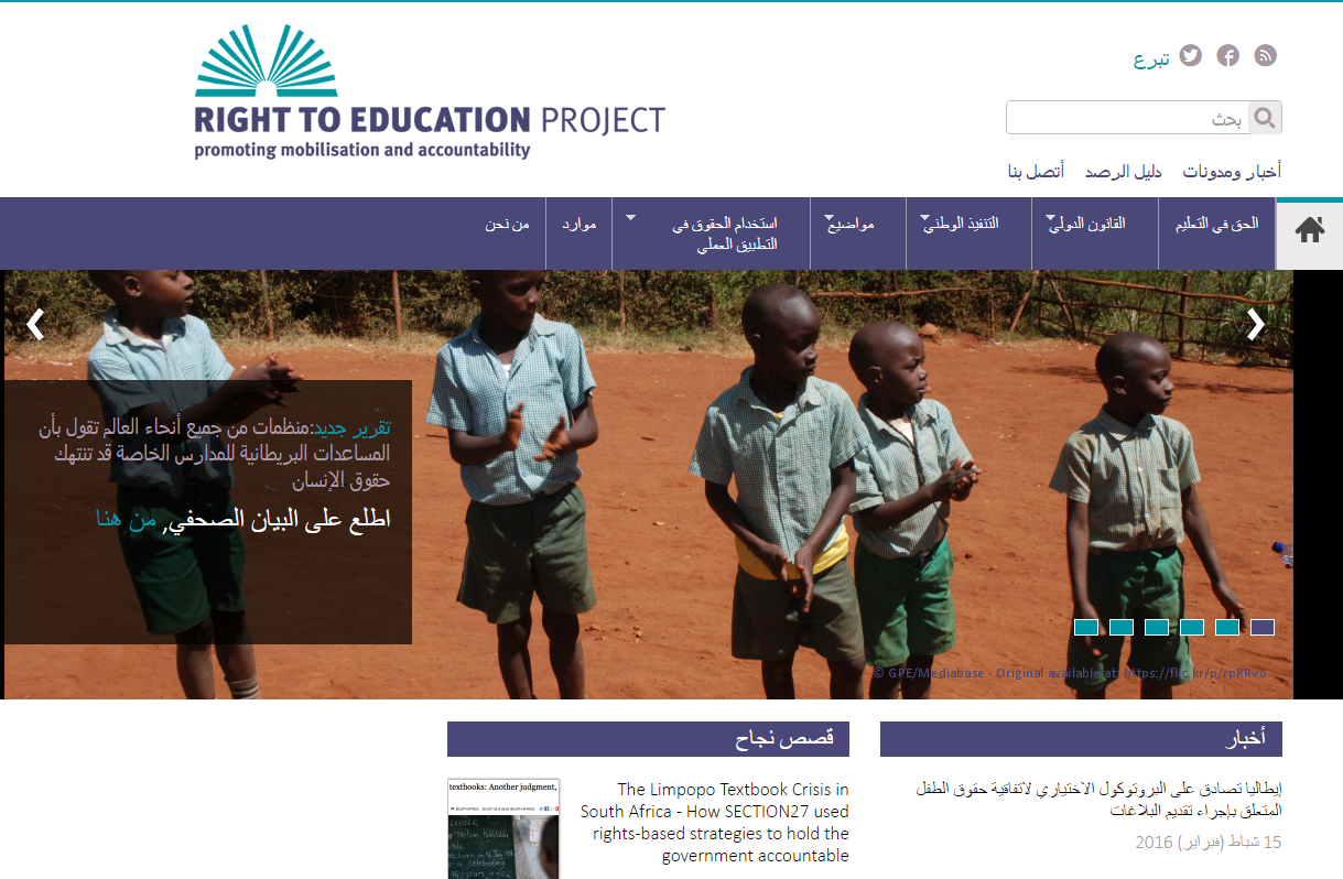 The launch of the Arabic version of the Right to Education Project's website comes at a time when the Arab world is struggling to guarantee the right to education. Political instability and armed conflicts in the region have resulted in increasingly grave violations of the right to education, including: the destruction of teaching institutes; the killing of children and teachers; the use of schools as military shelters; the arresting of teachers; the closure, bombing and destruction of schools; as well as the displacement of millions of students and their families to camps that do not provide them with education or meet their minimum human needs.
