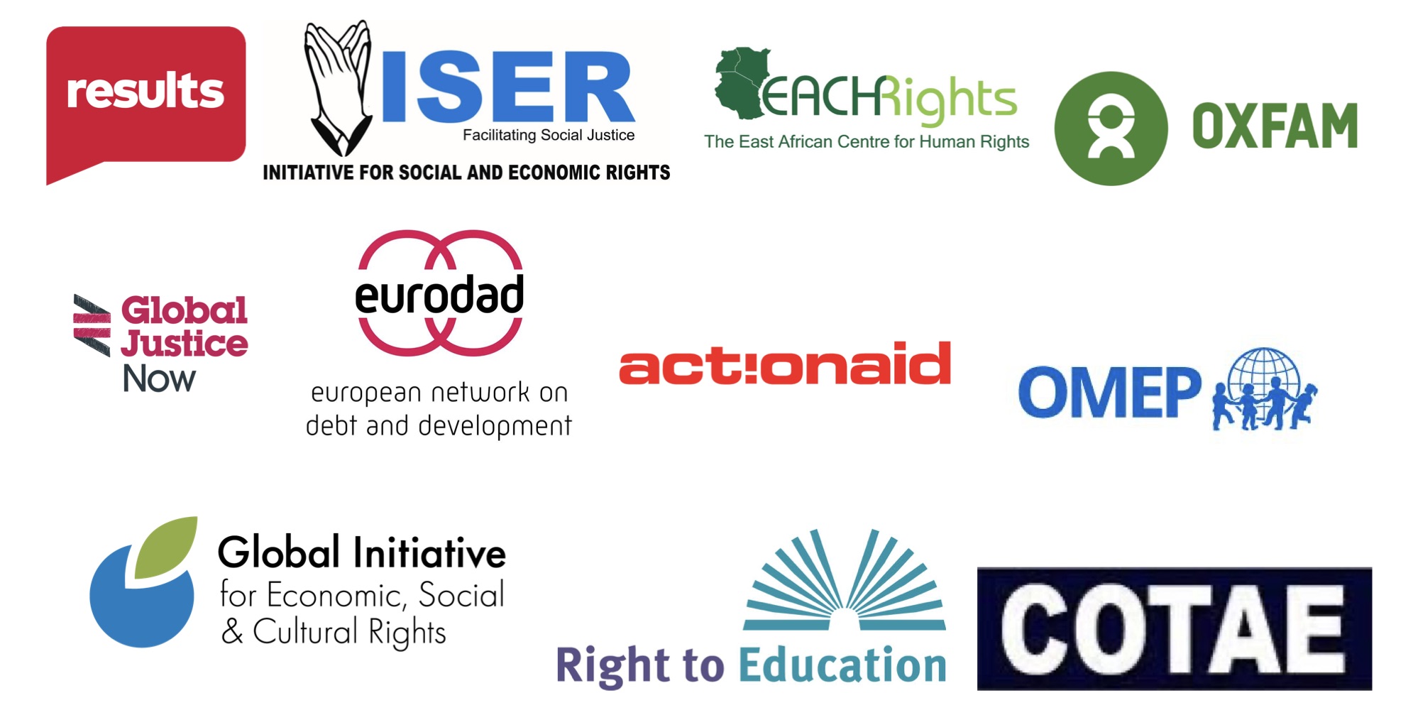 *ActionAid, Coalition for Transparency and Accountability in Education (Liberia), East African Centre for Human Rights (EACHRights, Kenya), Eurodad, Global Initiative for Economic, Social and Cultural Rights, Global Justice Now, Initiative for Economic and Social Rights (ISER, Uganda), Oxfam GB, RESULTS UK, Right to Education Initiative, World Organization for Early Childhood Education-OMEP.