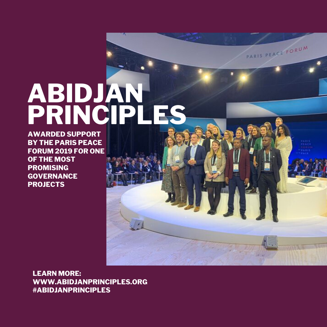 With this achievement, the Abidjan Principles will receive a year of customised support from the Paris Peace Forum throughout 2020.