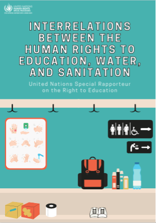 The report guides States to meet their obligations, and build a coherent policy response that takes into account the 4A’s framework of the right to education. Access to water, sanitation and hygiene minimum standards (water quality and quantity, available toilets, gender inclusivity, clean and safe water drainage and waste, food preparation and storage) is a key point to provide an efficient education system. Therefore, the report stresses states to ‘recognize the right to education and the rights to water and sanitation, including hygiene and menstrual health and hygiene, in their domestic legal framework’.