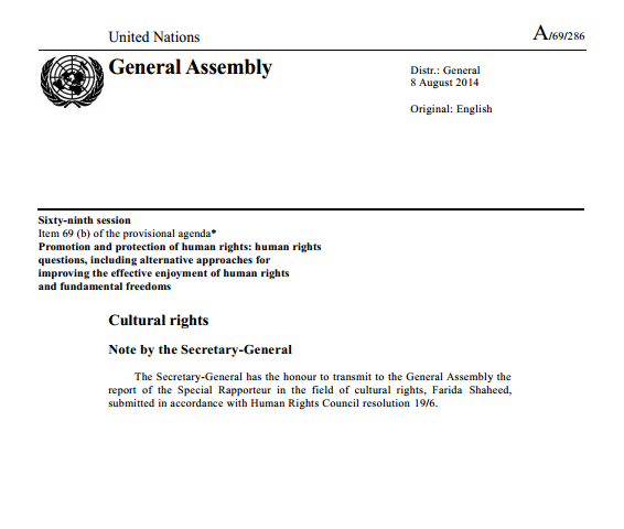 Paragraphs relevant to the right to education are quoted below. Access the full report (A/69/286): http://www.ohchr.org/EN/newyork/Pages/HRreportstothe69thsessionGA.aspx
