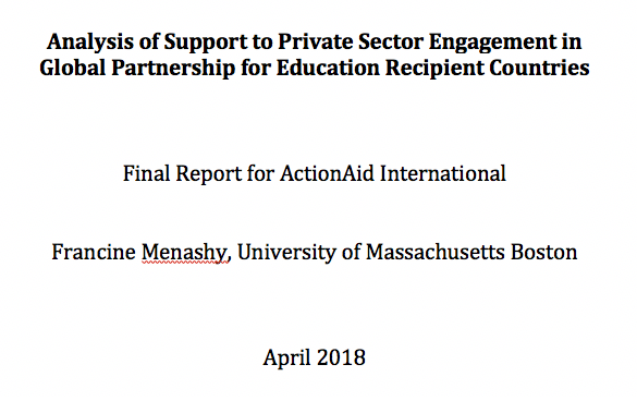The report contextualizes private engagement in education from a human rights perspective. Based on a descriptive analysis of Education Sector Plans (ESPs) and ESPIG project documents, it finds that GPE projects include far less private sector engagement in education than do country-designed ESPs. The report also gives a brief account of GRA grants and the single GRA project that engages the private sector.